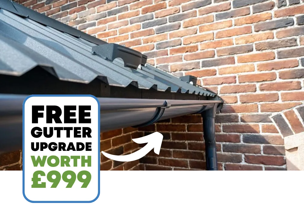 After your free roof health check, if you choose to move forward with a roof replacement with us, we'll throw in a PREMIUM gutter upgrade worth £999!